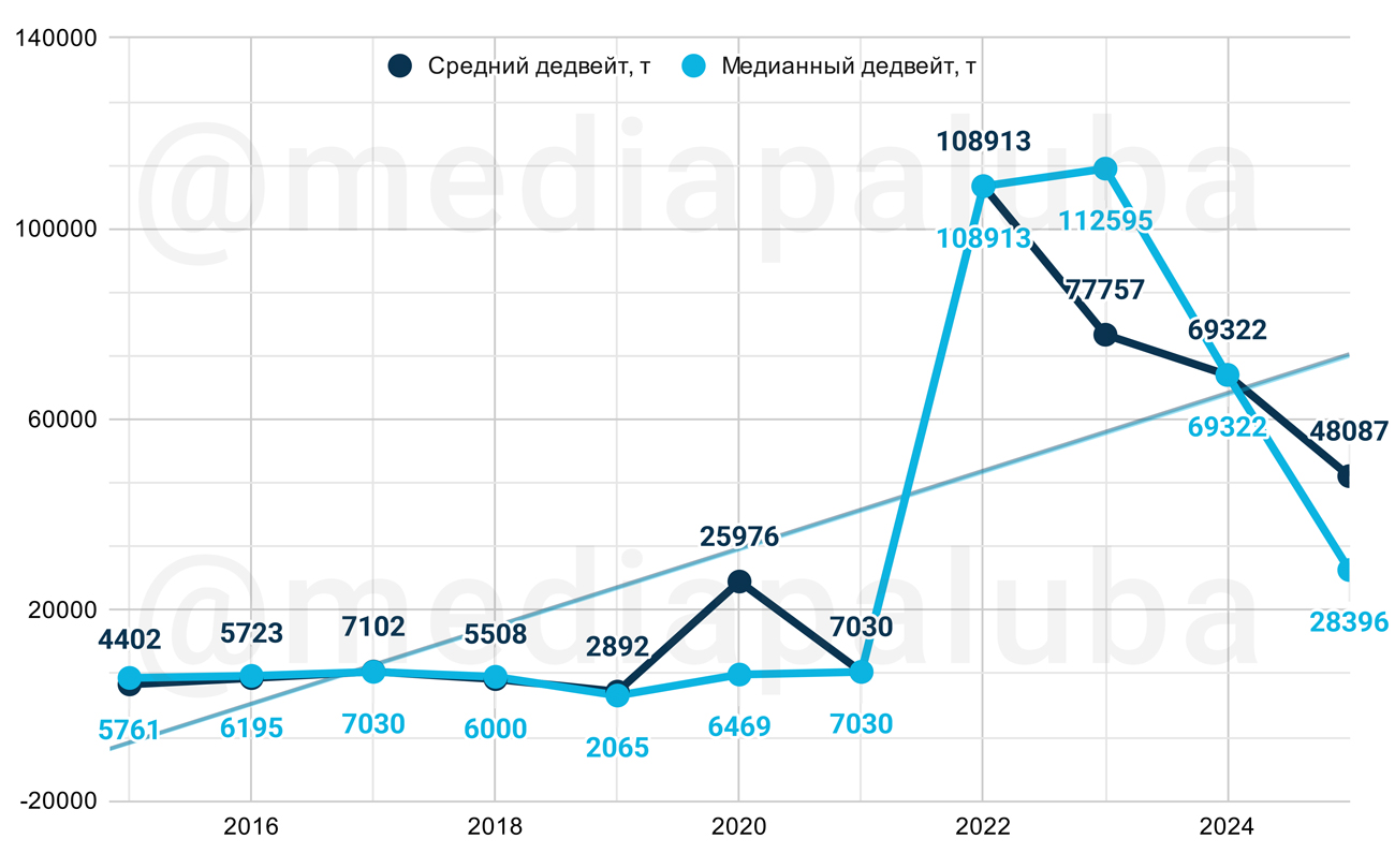 Дальневосточное предприятие стало виновником восходящего тренда в графиках суммарного, среднего и медианного дедвейта, несмотря на падение штучных показателей.